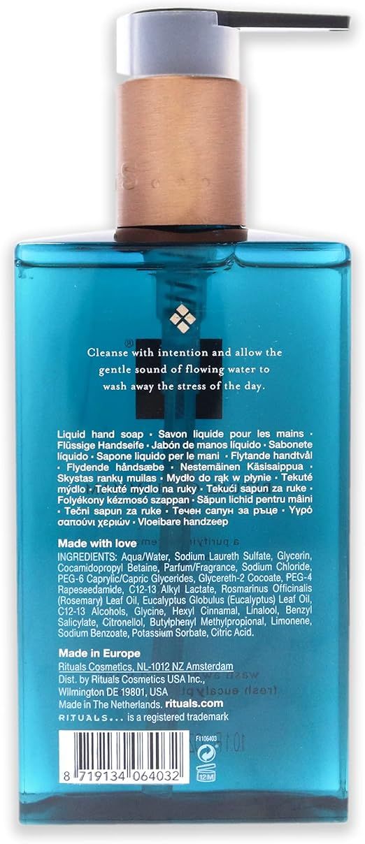 Xà phòng rửa tay dạng lỏng hiệu suất cao giúp làm sạch kỹ lưỡng để giúp loại bỏ tạp chất và mang lại cho bàn tay cảm giác ngậm nước và được nuôi dưỡng. Kết hợp nó với The Rituals of Hand Balm cùng mùi hương để có kết quả dưỡng ẩm lâu dài và chăm sóc